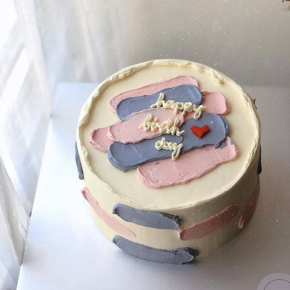 Reg 4" (3-4pax) / Default/ Original: White Cream (base), Pink & Purple (brush strokes) / Vanilla